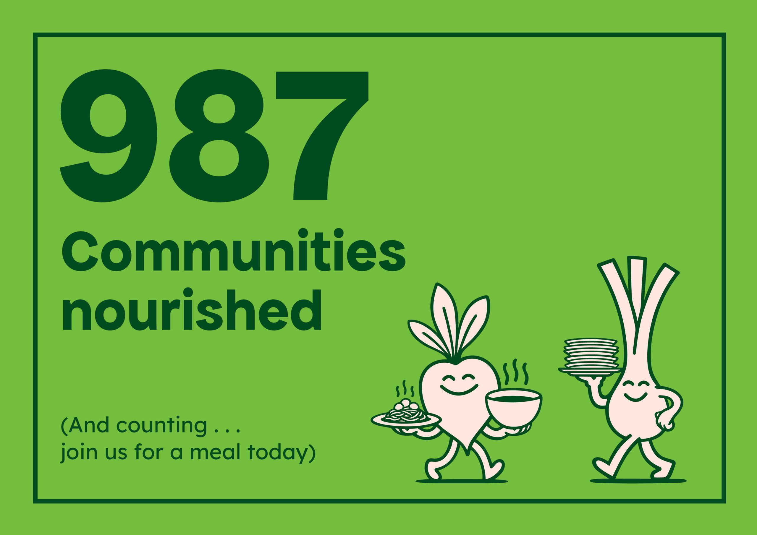 With demand for their services increasing, community dining charity FoodCycle required a bold, brand refresh. It needed to mix relevant, emotional storytelling with accessibility, all topped off with a dollop of fun. They wanted their diners to feel more like they were invited to a community event, rather than receiving a charity handout.